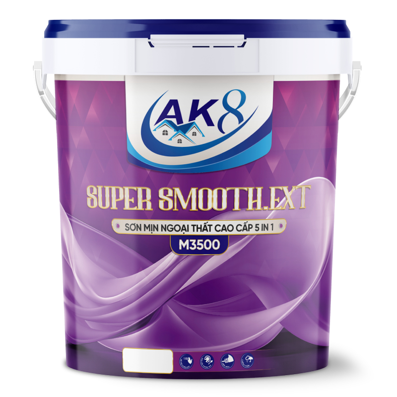 SUPER SMOOTH.EXT – SƠN MỊN NGOẠI THẤT CAO CẤP 5 IN 1 là loại sơn nước Acrylic cho màng sơn mịn. Màu sắc phong phú, bên màu, được sử dụng ngoài nhà, phủ hợp với các công trình đòi hỏi chất lượng cao, mang lại vẻ đẹp sang trọng cho không gian ngoại thất. Tính nhiệt đới hóa cao phù hợp với các điều kiện khắc nghiệt của khí hậu nhiệt đới gió mùa.