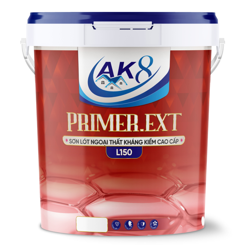 PRIMER.EXT – SƠN LÓT NGOẠI THẤT KHÁNG KIỂM CAO CẤP là loại sơn được cấu tạo bởi keo Styrene Acrylic copolymer. Làm tăng thêm khả năng bám dính, giúp cho sơn luôn bám chắc trên bề mặt tường đồng thời làm tăng khả năng láng mịn, tăng khả năng kháng kiếm cao nên giúp màu sắc luôn bền lâu hơn.