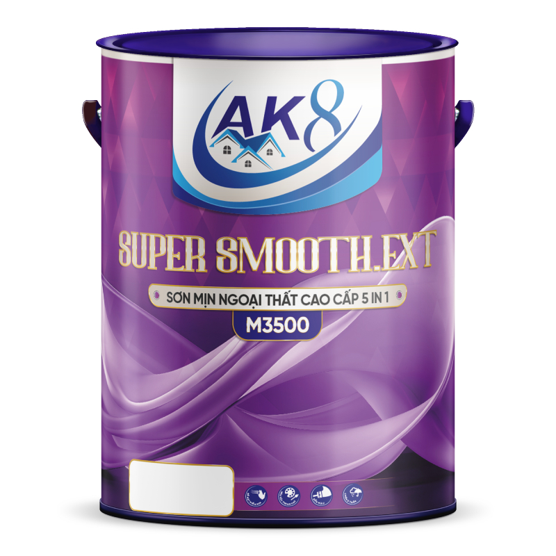 SUPER SMOOTH.EXT – SƠN MỊN NGOẠI THẤT CAO CẤP 5 IN 1 là loại sơn nước Acrylic cho màng sơn mịn. Màu sắc phong phú, bên màu, được sử dụng ngoài nhà, phủ hợp với các công trình đòi hỏi chất lượng cao, mang lại vẻ đẹp sang trọng cho không gian ngoại thất. Tính nhiệt đới hóa cao phù hợp với các điều kiện khắc nghiệt của khí hậu nhiệt đới gió mùa.